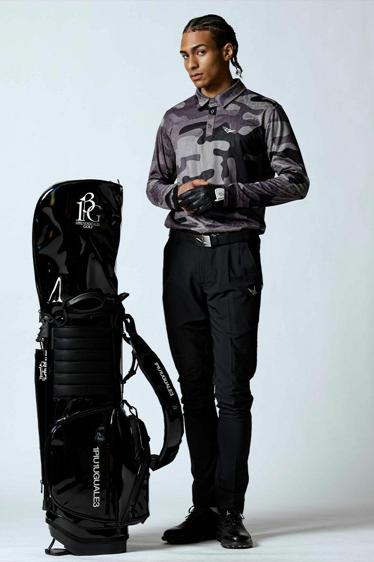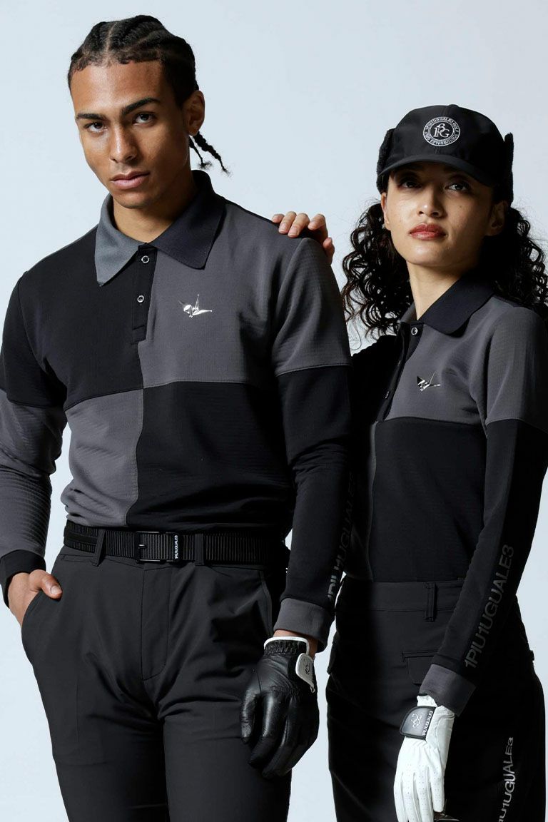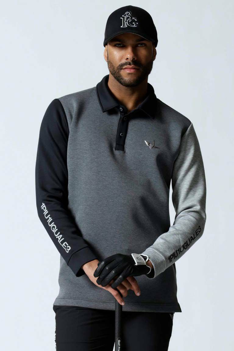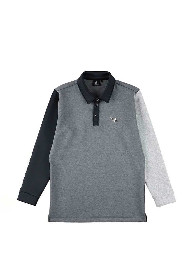 DIAGONAL SWITCH POLO L/S[BLACK]
