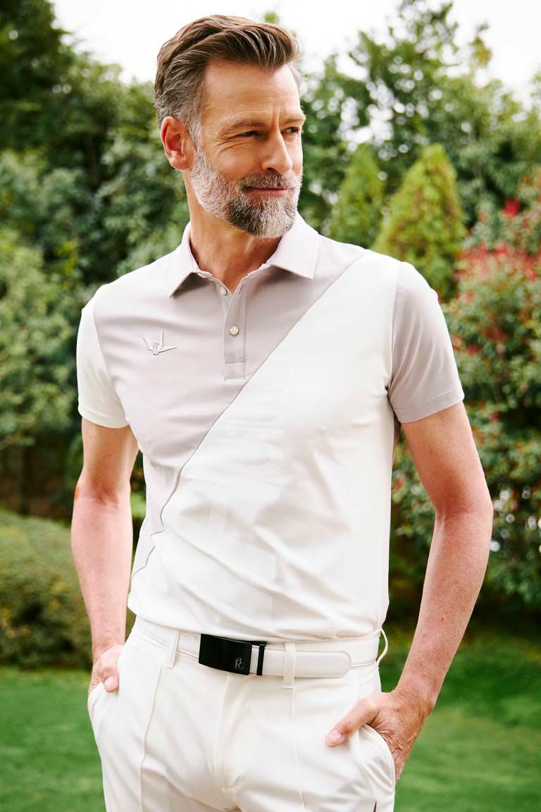 S/S POLO DIAGONAL SWITCH[GRAY BEIGE]