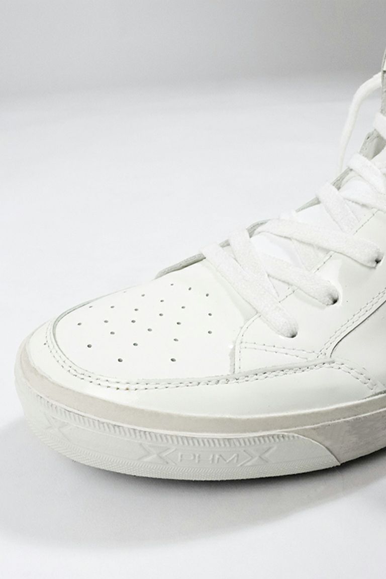 大人の足元を光らせる、白く艶のある夜顔スニーカー。 多くのセレブリティーやファッショニスタに 愛されるフィリップモデルに 1PIU1UGUALE3 がブランドとして世界初の別注をかけて 完成した特別なスニーカーが登場しました。 個性的なカラーリングや異素材使いで知られる フィリップモデルのスニーカーの中で アッパーをオールホワイトのエナメル素材で統一した 別注モデルは特別な存在感を放っています。 ミニマルな仕様ゆえにシャープなフォルムが際立ち エナメルならではの独特の艶がラグジュアリーな雰囲気を 生み出す上質な仕上がりとなっています。 シュータンにあしらわれたブラックのラベルが 絶妙なアクセントとなりつつブランドを主張。 サイドに入るアイコニックなエンブレムも健在です。 **シューレースやソール、本体につけられた汚れは意図的に施された フィリップモデル独特の USED 加工であり、商品不良ではありません。 予めご了承ください**