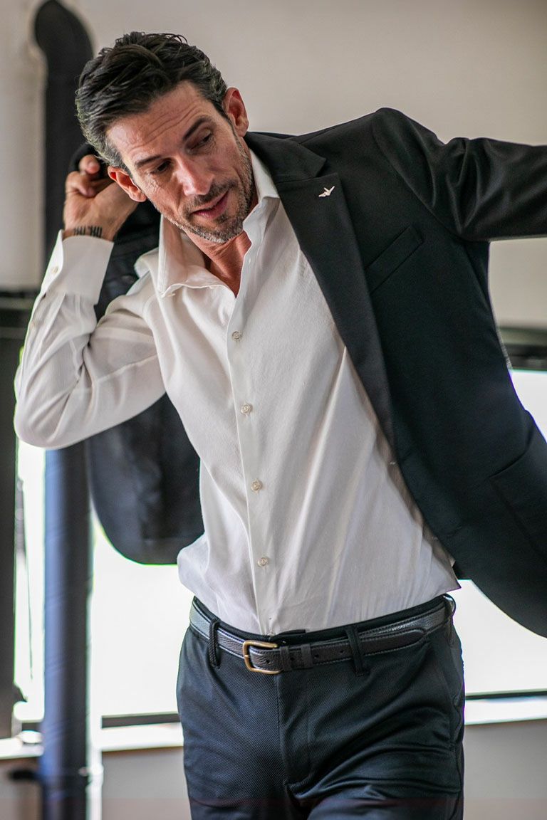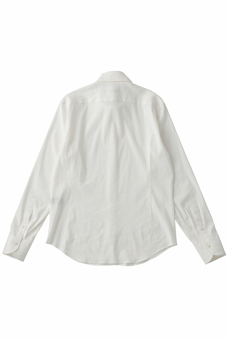 1piu1uguale3の定番として展開している 襟先の広がったホリゾンタルカラーを採用したプレーンシャツ。 首元の見え方を重視し、襟開きが180度に近く、 ややオープンカラー気味に綺麗に開く様に形成しています。 附属する釦はドレスシャツによくある貝釦ではなく、 1piu1uguale3 ロゴ入りの本水牛シャツ釦を採用しています。