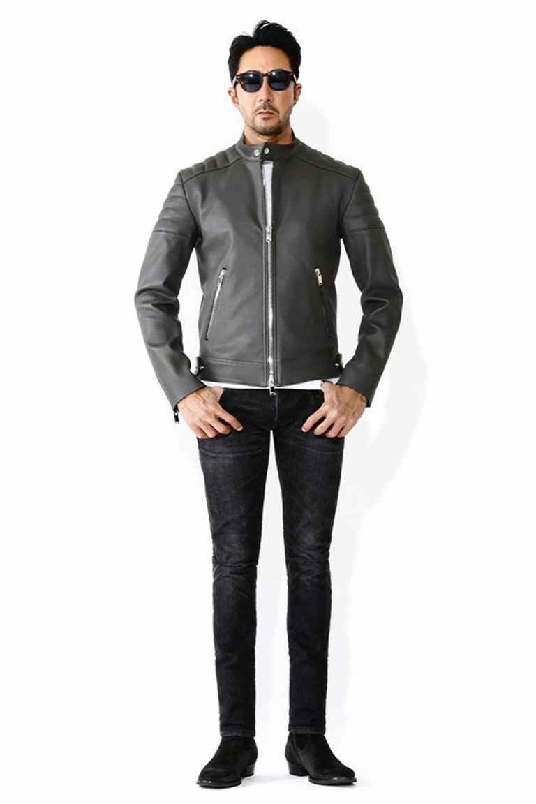 【RIDERS HISTORY】 ライダースジャケットのルーツはアメリカの先住民族のレザー文化といえます。 自らのサバイバルのため、神から与えられた自然の恵みを無駄なく 最大限に活かすことから生まれた独自のレザー文化です。 彼らはバッファローの革を、ウエアにあたるバッファローマントに、 鹿革を足の覆いであるレギングなどに利用しました。 30年代にハーレー・ダビットソンの普及に伴い、様々なスタイルが発表され、 現在に通ずるライダースジャケットが登場しました。 40年代には今なおマニアをうならせるブランドがいくつか誕生し、 50年代には俳優のマーロンブランドやエルビスプレスリーに代表されるR&R時代の到来で、 バイク=ライダースジャケット=不良といったイメージが定着しました。 60年代以降、バイク産業の発展と共に映画「イージーライダー」の登場で バイクカルチャーに多大な影響を与え、更に発展しました。 その後、経済の影響で衰退し、 数少ないブランドが生き残りをかけて、今現在も活躍しています。 そんな強いイメージのライダースは、ファッションアイテムのマスターピースとして、 様々なブランドがモチーフにしてデザインし、リリースしています。 【F-2 LIMITED RIDERS】 FIXERの代表アイテムレザーシリーズ「F-2」 伝統的なバイカージャケットを元に構築されたシングルライダース。 ショルダーのパテッドデザインが特徴で、 着丈の前後差をつけて後ろ身頃の着丈を短くする事で、 身軽な印象を与えます。 素材の良さを活かし、アームからアームホールにかけて細くし、 タイトなシルエットに絞っています。 袖口にはファスナーをつけ、袖口を広くする事で腕が長く見える効果もあり、 より一層スタイルを良く見せてくれます。 様々なパターンメイキングのこだわりにより、 様々なパンツスタイルにも合うライダースジャケットです。 男らしいワイルド感とラグジュアリーな色っぽさを両立させた、 至高のライダースに仕上げています。