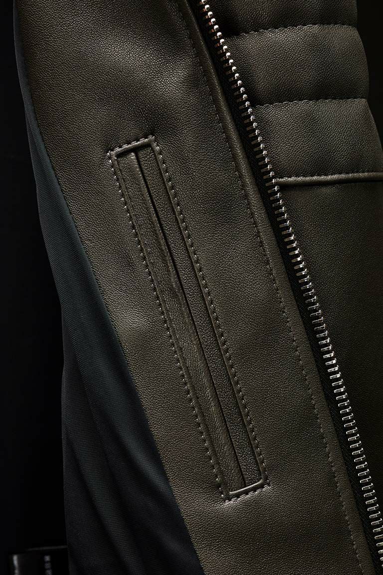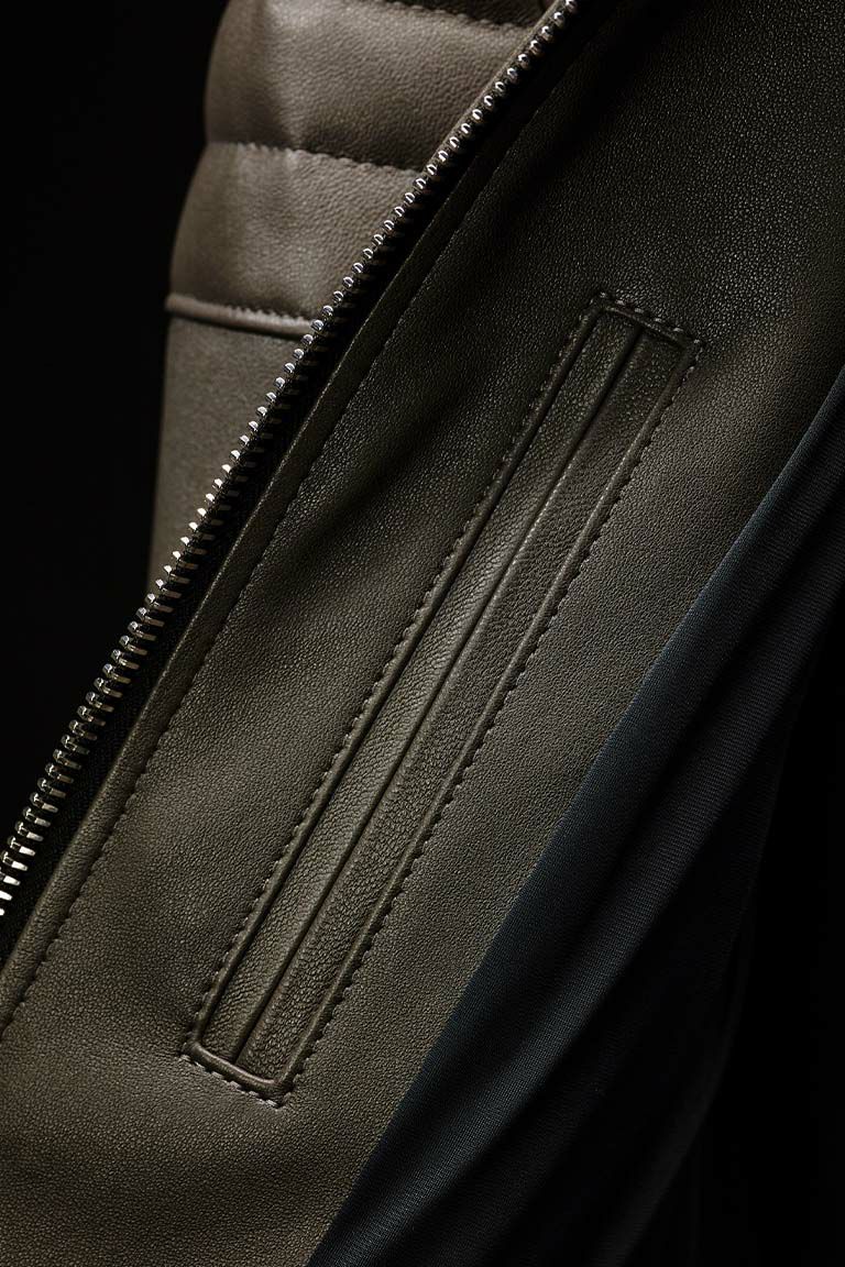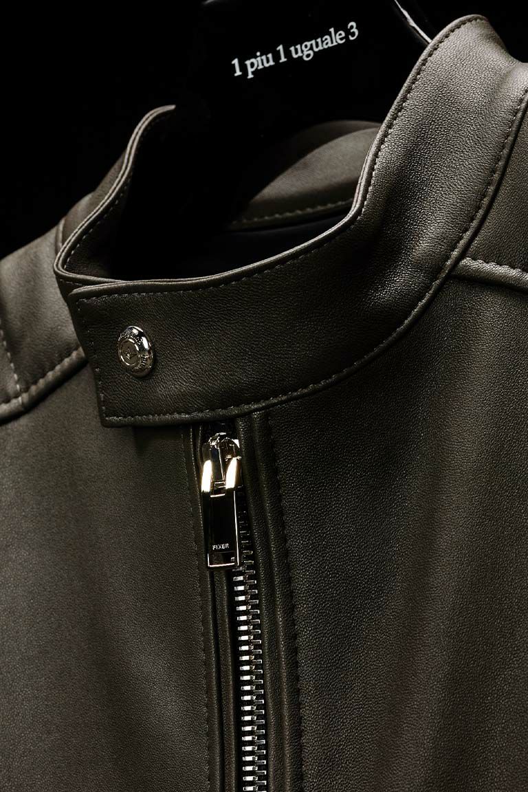 STRETCH LAMB LEATHER この素材は、特殊な加工により従来のレザーにはない ストレッチ性を持たせた希少なラムレザーです。 染色時にストレッチ素材をボンディングをしてから染めているので、 染色時の熱が加わり、収縮する事でストレッチ性を持たせています。 ※その染色の熱や、時間が 非常に難しく、手間がかかっております。 ボンディングする前に0.3㎜程の厚みまで、 特殊な技術によってできうる限り薄く仕上げています。 素材を薄くしなければ、最終の仕上げの段階で、 素材自体が厚く重たくなる為です。 特徴のストレッチ性ですが、熱収縮により大変小さくなりますので、 大きな原皮を加工し縮ませており、大変贅沢な作りです。 柔軟性があり動きやすく、着心地が非常に良いです。 着用し、動いた時に、一番の違いがわかります。 今までのレザージャケットの概念を覆す様な着心地の楽さを持った、 ジャージ感覚で着る事が出来るライダースジャケットです。 【DETAIL】 スナップ釦には、今回特別にイタリアのFiocchi社の DEAD STOCKスナップ釦をベースに、真鍮ベースでSILVERメッキを施した オリジナルロゴの刻印である折鶴と1PIU1UGUALE3を入れて、 キャップをジュエリー工場で作成し、それを被せた仕様を採用しています。 通常工程の何倍も時間と費用を要する仕様で、 立体的かつ存在感があり高級感溢れるスナップ釦です。 ファスナーにはFIXERオリジナルのLAMPOファスナーを採用しています。 LAMPOの中でも最も高品質なSUPER LAMPOを採用しており、 美しい光沢と絶妙な太さの存在感あるファスナーはジャケットを引き立たせます。 裏地には、東レが独自に開発した 吸水速乾機能も持った肌滑りの良いストレッチ素材を採用し、 従来のライダースには無かったストレスフリーな着心地を実現しています。 ※今回のモデルは、両袖のロゴプリント無しとなります。