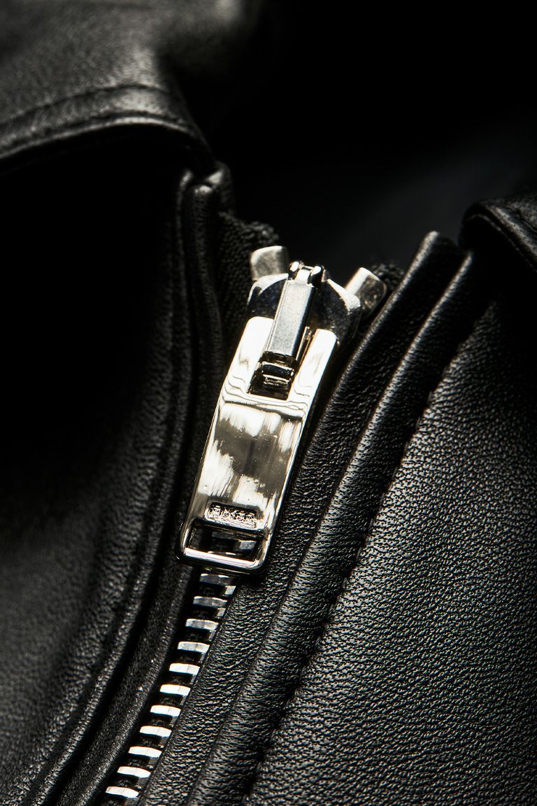 STRETCH LAMB LEATHER この素材は、特殊な加工により従来のレザーにはない ストレッチ性を持たせた希少なラムレザーです。 染色時にストレッチ素材をボンディングをしてから染めているので、 染色時の熱が加わり、収縮する事でストレッチ性を持たせています。 ※その染色の熱や、時間が 非常に難しく、手間がかかっております。 ボンディングする前に0.3㎜程の厚みまで、 特殊な技術によってできうる限り薄く仕上げています。 素材を薄くしなければ、最終の仕上げの段階で、 素材自体が厚く重たくなる為です。 特徴のストレッチ性ですが、熱収縮により大変小さくなりますので、 大きな原皮を加工し縮ませており、大変贅沢な作りです。 柔軟性があり動きやすく、着心地が非常に良いです。 着用し、動いた時に、一番の違いがわかります。 今までのレザージャケットの概念を覆す様な着心地の楽さを持った、 ジャージ感覚で着る事が出来るライダースジャケットです。 【DETAIL】 スナップ釦には、今回特別にイタリアのFiocchi社の DEAD STOCKスナップ釦をベースに、真鍮ベースでSILVERメッキを施した オリジナルロゴの刻印である折鶴と1PIU1UGUALE3を入れて、 キャップをジュエリー工場で作成し、それを被せた仕様を採用しています。 通常工程の何倍も時間と費用を要する仕様で、 立体的かつ存在感があり高級感溢れるスナップ釦です。 ファスナーにはFIXERオリジナルのLAMPOファスナーを採用しています。 LAMPOの中でも最も高品質なSUPER LAMPOを採用しており、 美しい光沢と絶妙な太さの存在感あるファスナーはジャケットを引き立たせます。 裏地には、東レが独自に開発した 吸水速乾機能も持った肌滑りの良いストレッチ素材を採用し、 従来のライダースには無かったストレスフリーな着心地を実現しています。