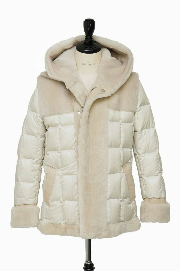 1PIU1UGUALE3 × EMMETI COLLECTION。 1piu1uguale3独自のパターンにより全てのバランスを再構築し 製作された特別なラグジュアリーモデルを発表。 1975年にフィレンツェ郊外の町ヴィンチで創業した レザーウェアブランド「EMMETI(エンメティ)」。 初代ヌンツィオは二人の子供の名前 マッシモのM(伊語のエンメ)とティーナのT(伊語のティ)から 社名(ブランド名)をエンメティとしました。 もともとはファーガーメント、つまり毛皮工房であったが 現在はレザーガーメントを拡充し次代を託された マッシモとティーナに引き継がれ今日に至ります。 コンセプトは「エレガンテ・スポルティーヴォ」 スポーティーでありながらエレガンスを忘れないスタイル レザーとファー、レザーとファブリックなど 高級素材を巧みに組み合わせることによって 程よいラグジュアリー感を演出しています。 また素材使いのみならず人間の体躯を 熟知した絶妙なフィッティングも 「エンメティ」の大きな魅力です。 好評の「ムートンダウン」コレクションは 定番のナイロンミックスに加え袖にケーブルニットや ラムナッパレザーを使用する等の バリエーションを拡充して展開しています。 代名詞であるムートンには、世界最高級とされる スペイン産メリノ種の羊革を採用。 メリノ種は特に羊毛の生産を目的として飼育される ヒツジの品種の筆頭であります。 原型はイベリア半島でルチウス・コルメラが ローマのタレンティーネ種と アジア系・北アフリカ系・半島土着種を科学的に交配し開発した種。 理想的なウールだけを産するメリノ種は毛織物産業を通じて スペインの黄金時代を支えた品種で 当時スペイン王家が国費を投じて飼育し数頭が海外の王家へ 外交の手段として贈呈される以外は門外不出とされていました。 羽毛はダウン90%フェザー10%で混合された ポーランド産ホワイトグースダウンを使用しています。 極寒の地として知られるポーランドは 高品質な羽毛を育てるために適した地域に あることもさることながら国家政策として 高品質な羽毛を生産するための研究開発が積極的に行われています。 このポーランドの恵まれた環境で 育てられた水鳥から採取された羽毛は 耐久性・弾力性に優れ、羽毛にとって最も重要な要素である、 かさ高、保温性、風合いのどれをとっても 最高品質といわれています。 ポーランド産のホワイトマザーグースは ホワイトコウダと呼ばれる最高品質のダウンです。 表地のナイロンに使用しているイタリア、ラミンティス社の 超軽量素材スーパーライトは従来のアウターの約半分の重量を実現。 厳選された最高級素材に拘っているブランドであります。 本モデルはムートンをフード裏にも採用するなど贅沢に使用し 一層のラグジュアリー感を演出した佇まい オリジナルではLampoを使用しているファスナーには 1piu1uguale3で使用しているイタリアRaccani社の 最高級に位置付けられるSUPER RACCANIを選定。 デザイン、パターンのみならず 細部の付属にまで拘ったコレクションとなっています。