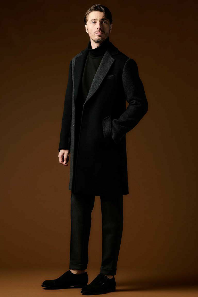 19世紀にチェスターフィールド伯爵がはじめて着た事が最も有力な由来とされ 特にヴィクトリア時代下のイギリスでは男性の外套として流行したチェスターコート。 現在の日本ではあらゆるコートの中でも最も格式が高いにも関わらず フォーマルとして着ることはもちろんビジネスやカジュアルとしても 着こなすことができるので非常に人気があるコートの一種になっています。 使いやすい腰の箱ポケットなど細部のディテールにクラシックな手法を取り入れた 大人の一着に仕上げています。釦は1PIU1UGUALE3ロゴ入りの本水牛釦を使用。