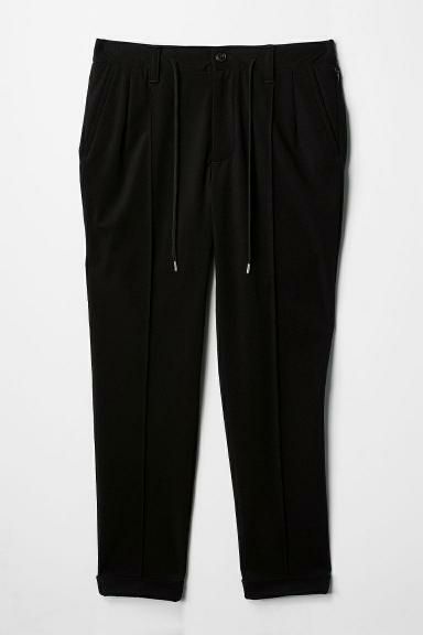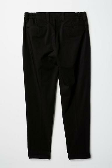 テーパードの美しいシルエットとピンタックを入れた