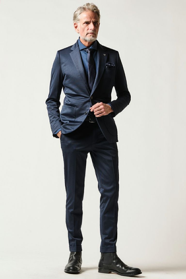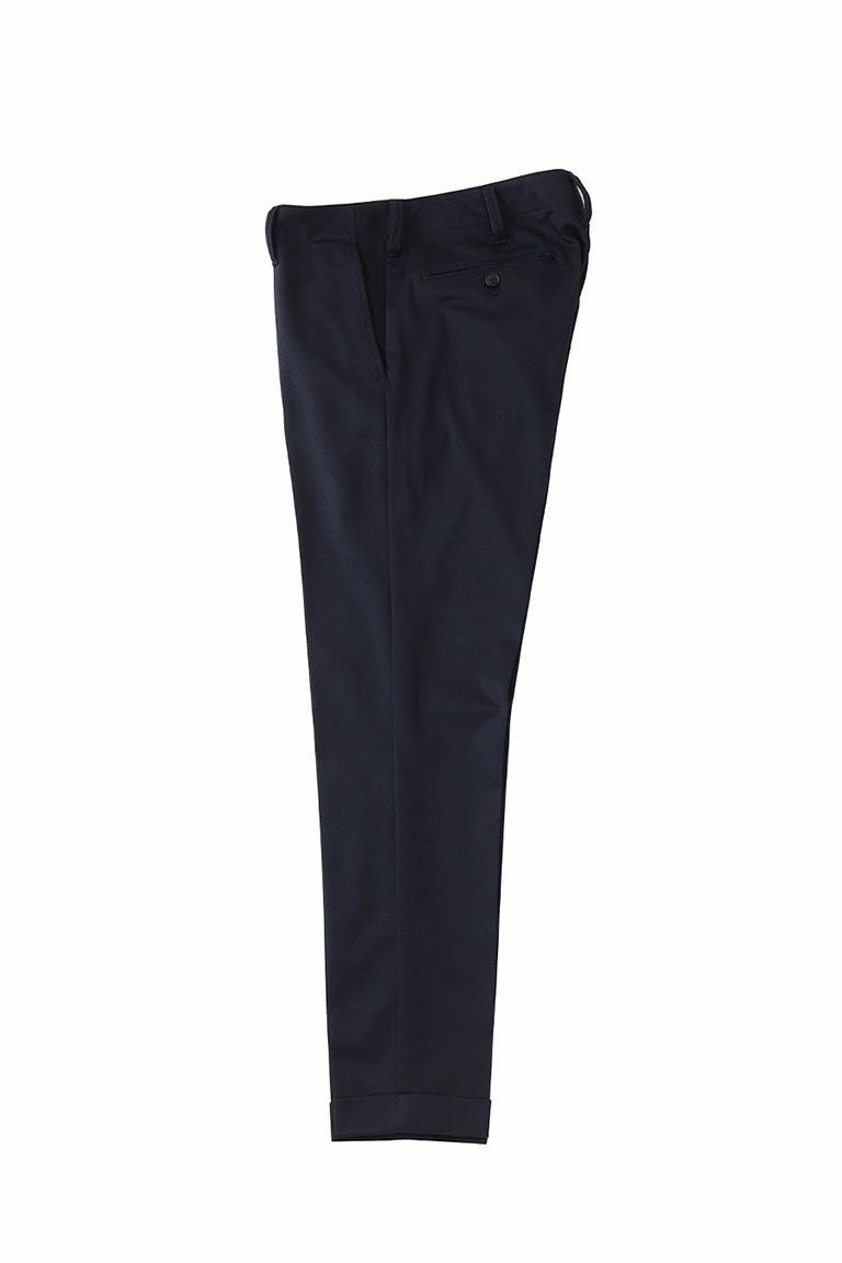 毎シーズン定番として展開しているRIB SET UP シリーズ。 1960~70’のテーラードジャケットを検証しクラシックなディテールはそのままに 素材使いとデザインにより構築したテーラードコレクション。 シルエットを決めるアームホールの形状・カマのバランス 全体のゆとり分量すべてを計算、構築した至高のシルエットが生み出されています。 脇にキックバックの良いテレコを採用することで デザインと共に着心地を向上させテーラードの仕上がりを損なうことなく ノンストレスでデイリーなセットアップに仕上げています。 裏始末はテーラードの基本である「雨蓋つき本台場仕立て」と 背裏は軽さを意識した観音仕立てで遊び心も忘れずに 胸ポケットの袋布をチーフに見立てたディテールを採用しています。 また、1piu1uguale3オリジナルの折鶴ピンをラペルに付属しています。 スラックスタイプのパンツはクラシックな佇まいを崩すこと無く 実用性を高めた仕様となっています。 ジャケット同様にパイピング・シック布などの クラシックなディテールはそのままに、ウエストベルトにテレコ(リブ)を採用。 同時に脇の立体切替部もテレコを使用することで 至高の着心地を実現させています。