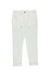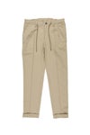 クラシックなトラウザーズから生み出したセンタークリーススラックスの登場です。 「トラウザーズ」は同じボトムスでもスーツに合わせられる 礼装用という意味合いが強いフォーマルな名称であり、 この語源に基づきフォーマルをカジュアルダウンさせた企画としてデザインしています。 テーパードの美しいシルエットとピンタックを入れたフロントのセンタークリースが特徴的で、 裾始末はクラシックなダブル仕立て。 ウエストシャーリングリブとドローコードにてリラックスして着用しても良し、 ドローコードを内側に落とすことでベルト着用も可能な2WAY仕様です。 前開きはZIPPERフライ、釦は1PIU1UGUALE3ロゴ入り本水牛釦を採用しています。 今季は半袖のBIGシャツとのセットアップ提案です。 生産国:日本