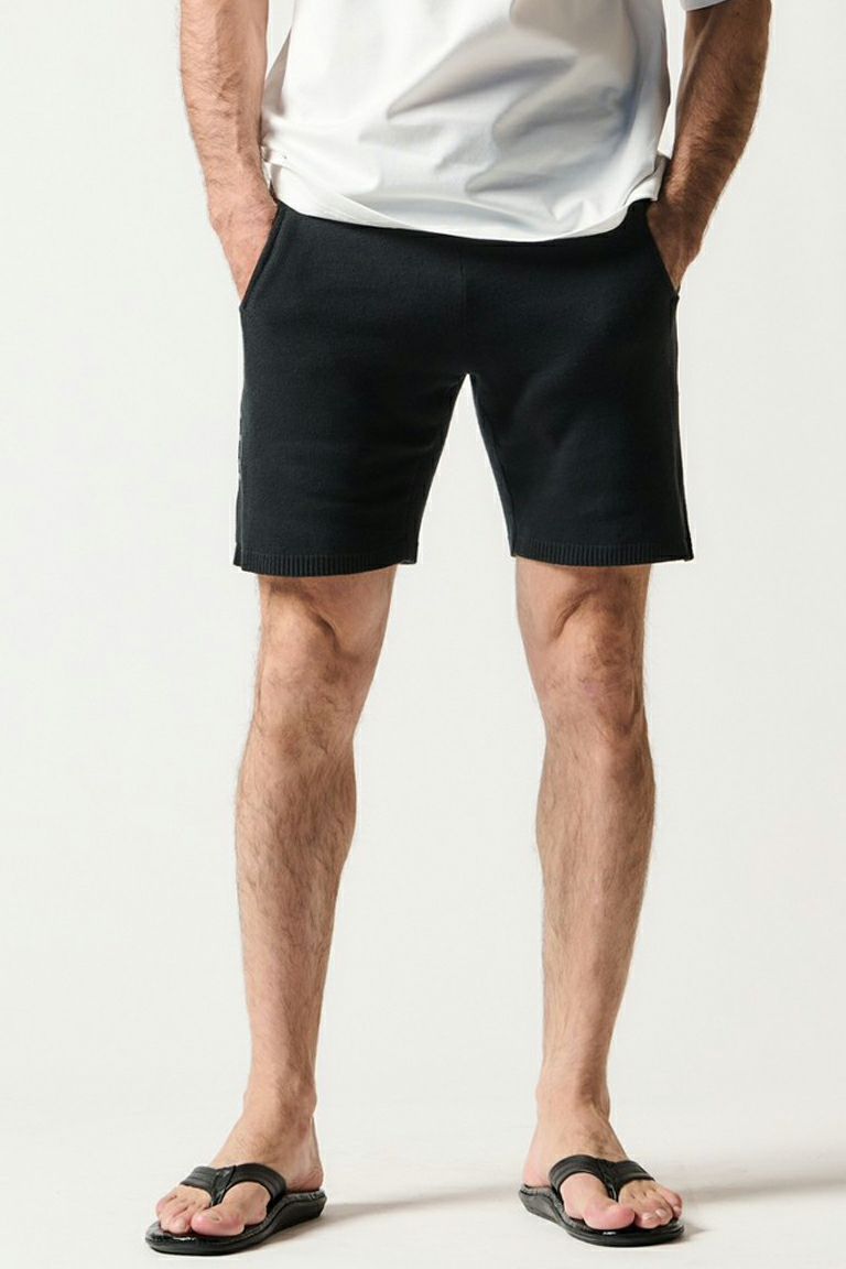 ニットのイージーショーツの登場です。 両脇にポリエステル糸 AMOSSA(アモッサ)にて編み立てた テープ地を上付けすることにより素材感の違いを出しています。 また、右側のテープ上にのみ1PIU1UGUALE3ロゴを配色で表現し カジュアルでスポーティーな仕上がりになっております。 今季は無地黒と配色が美しいホワイト迷彩の2色展開にてご提案します。