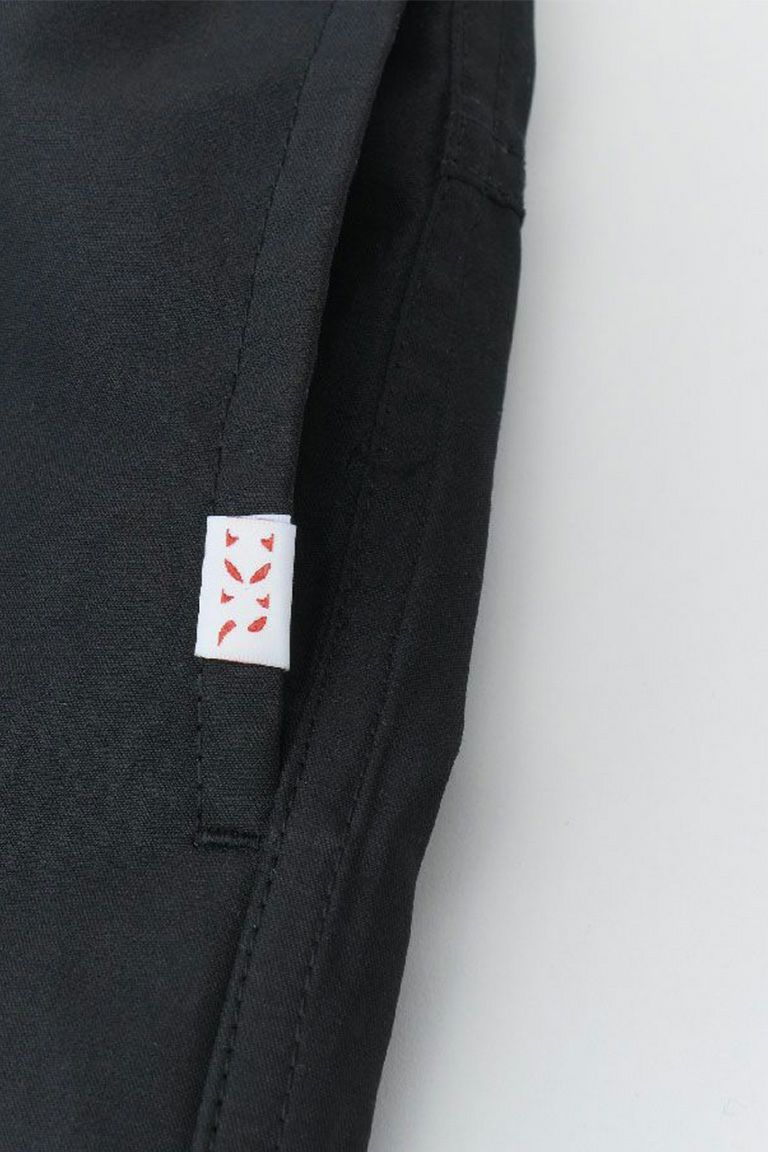 ウエスト部分をゴムにしドローストリングで調整可能にすることで、