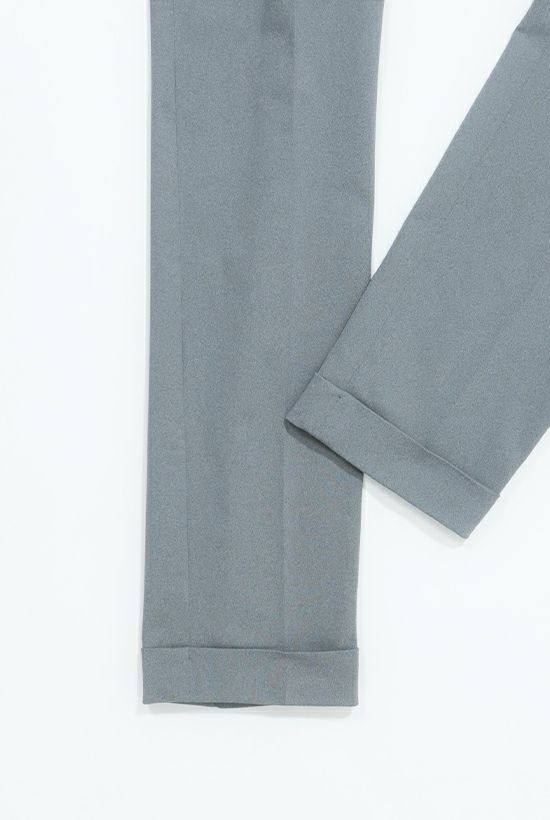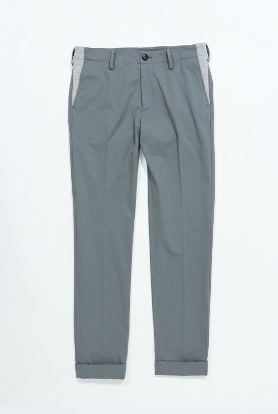 毎シーズン定番として展開しているRIB SET UP シリーズ。 1960~70’のテーラードジャケットを検証しクラシックなディテールはそのままに、 素材使いとデザインにより構築したテーラードコレクション。 身頃裏には1piu1uguale3を象徴する柄の一つであるペイズリーを ジャガードで表現した素材を使用しています。 シルエットを決めるアームホールの形状・カマのバランス全体のゆとり分量すべてを計算、 構築した至高のシルエットが生み出されています。 脇にキックバックの良いテレコを採用することで デザインと共に着心地を向上させテーラードの仕上がりを損なうことなく、 ノンストレスでデイリーなセットアップに仕上げています。 テレコはあえて表地同色ではなく、同色ぶらししています。 裏始末はテーラードの基本である「雨蓋つき本台場仕立て」と 背裏は軽さを意識した観音仕立てで 遊び心も忘れずに胸ポケットの袋布をチーフに見立てたディテールを採用しています。 また、1piu1uguale3オリジナルの折鶴ピンをラペルに付属しています。 スラックスタイプのパンツはクラシックな佇まいを崩すこと無く実用性を高めた仕様となっています。 ジャケット同様にパイピング・シック布などのクラシックなディテールはそのままに、 ウエストベルトにテレコ(リブ)を採用。 同時に脇の立体切替部もテレコを使用することで至高の着心地を実現させています。