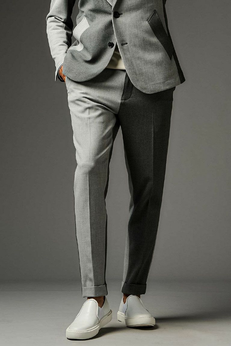 毎シーズン定番として展開しているRIB SET UPシリーズの表地クレイジー仕様です。 1960~70年代のテーラードジャケットを検証し、クラシックなディテールはそのままに、 素材使いとデザインによって構築したテーラードコレクション。 シルエットを決めるアームホールの形状、カマのバランス、全体のゆとり分量を すべて計算し構築した至高のシルエットが生み出されています。 脇にキックバックの良いテレコ(リブ)を採用することで、 デザインと共に着心地を向上させ、テーラードの仕上がりを損なうことなく、 ノンストレスでデイリーに着こなせるセットアップに仕上げています。 裏始末はテーラードの基本である「雨蓋つき本台場仕立て」、 背裏は軽さを意識した観音仕立てで、胸ポケットの袋布をチーフに見立てた 遊び心あるディテールを採用しています。 また、1piu1uguale3オリジナルの折鶴ピンがラペルに付属しています。 スラックスタイプのパンツはクラシックな佇まいを崩すこと無く実用性を高めた仕様です。 ジャケット同様にパイピング・シック布などのクラシックなディテールはそのままに、 ウエストベルトにテレコを採用。同時に脇の立体切替部もテレコを使用することで、 至高の着心地を実現させています。