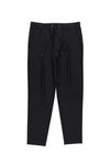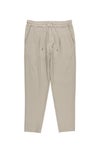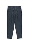 イージースラックスの登場です。 ウエストはゴム+ドローコード付のイージー仕様で、 ドローコードは丸紐タイプで紐先は1PIU1UGUALE3ロゴを レザーにて名入れした弾丸チップ加工を施しています。 股上はやや深め、1タック入りで膝から裾にかけて 緩やかなテーパードをかけており、美しいシルエットを完成させました。 後ポケットは切替を利用したシームポケットで開閉可能なコンシールファスナー付きです。 裾の始末もシンプルなシングル仕上げです。