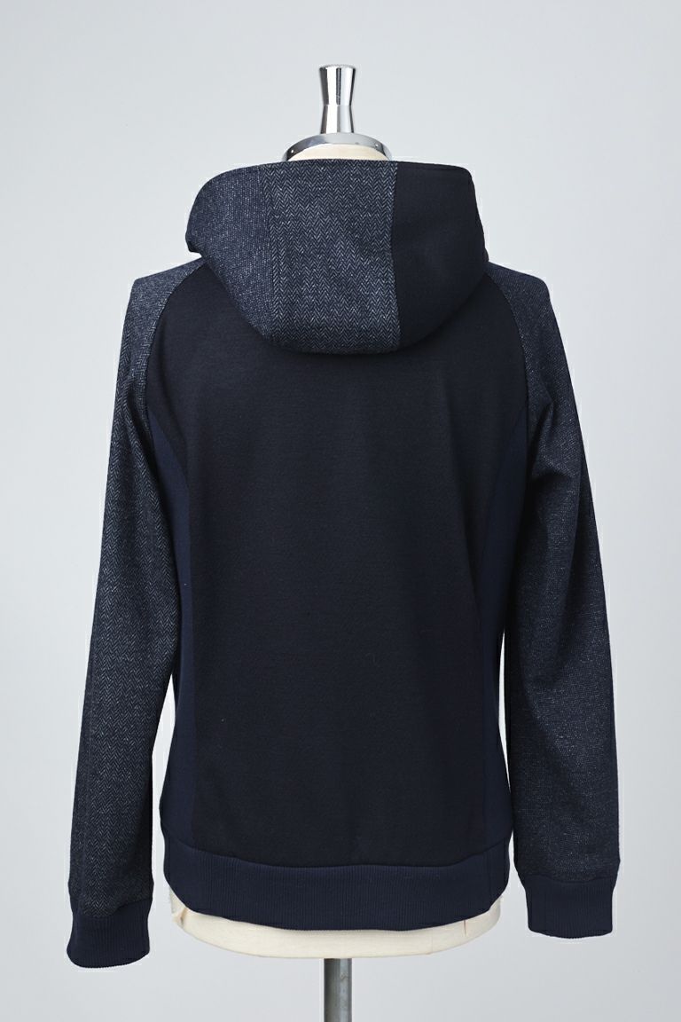 WOOL COTTON TOP COMPRESSION JERSEY 1/48 outer:wool 66% cotton 34% other:wool 60% cotton 40% other2:wool 61% cotton 39% lining:cupra 100% rib:cotton 45% polyester 42% polyurethane 13% ウールコットンTOP杢ジャージー1/48の梳毛ウールと30/1の綿を丁寧に交編し、 圧縮させた国産の拘りジャージーです。 上品なメランジ感と圧縮による布帛のようなしっかりとした風合いが特徴です。 ジャージーなので着心地もよくアウター用途に適した差別化商品です。 ドット釦はイタリア・フィオッキ社の1PIU1UGUALE3オリジナルです。 ファスナーは気品漂う上品な色合いや輝きで高級感を感じさせる SUPER RACCAGNIを使用しています。