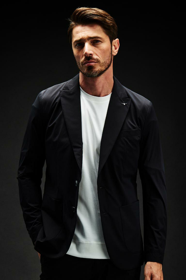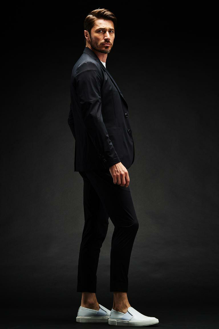 ブランドが強みとしているセットアップはストレッチ性抜群。