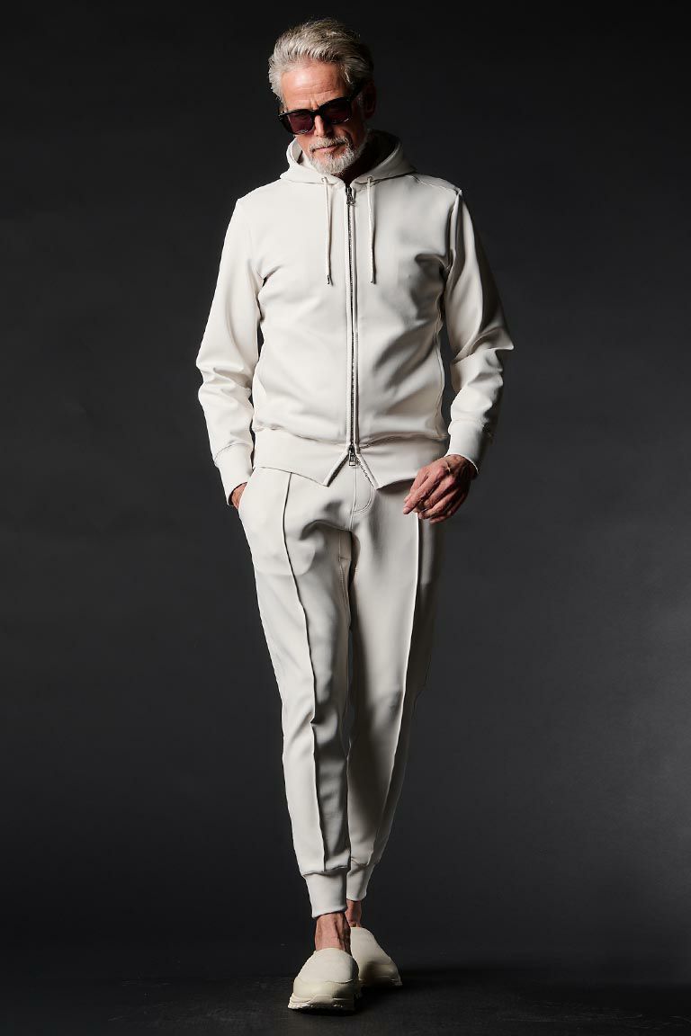 シンプルなデザインと上質素材のジャージーセットアップ、