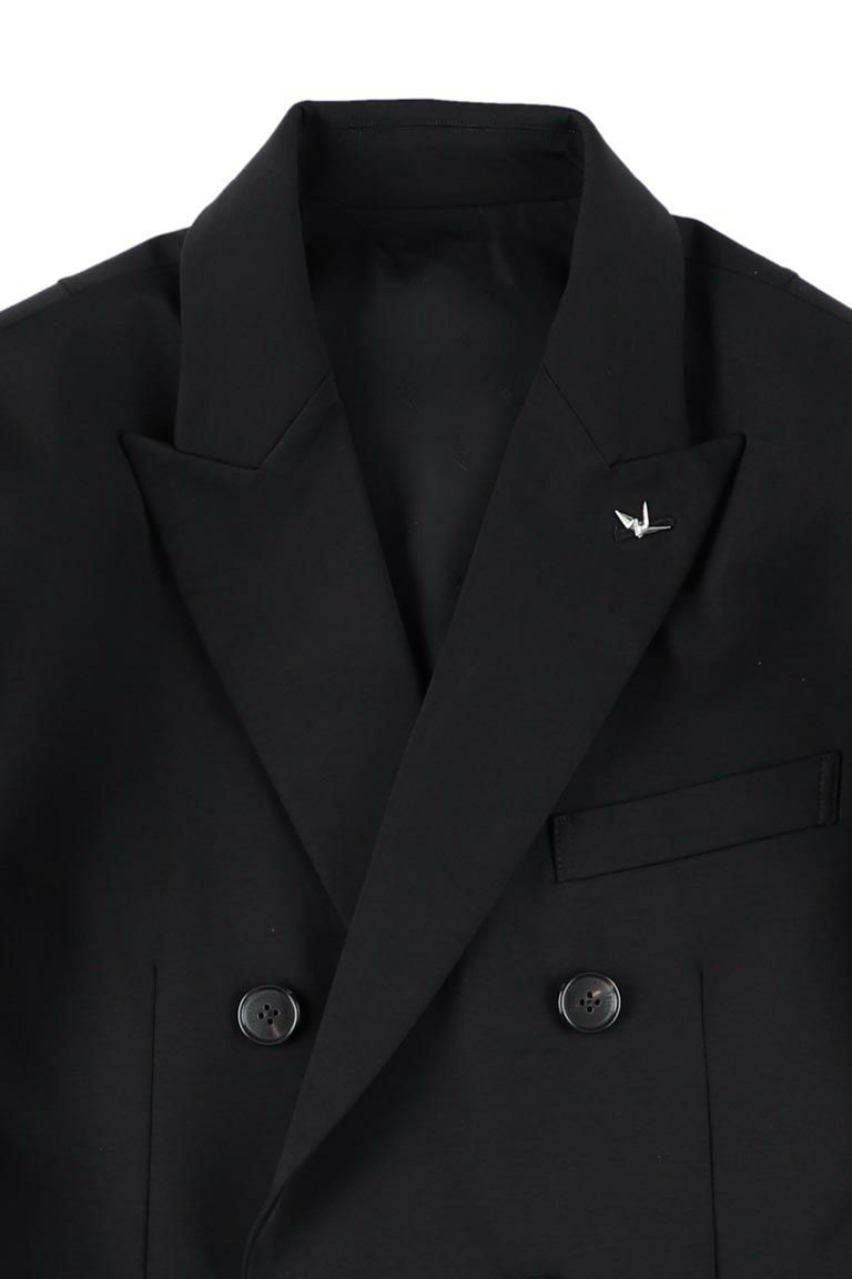 今季はセミピークドラペルのダブルジャケット、ノッチドラペルのシングルジャケット、
