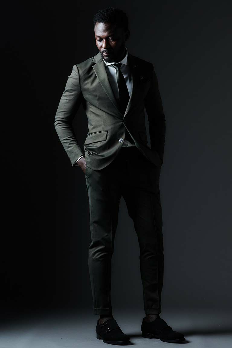 毎シーズン人気の”旅ジャケ”シリーズを簡素化したセットアップ「COMFY SET-UP」の登場です。 最旬にしてこの春夏、最も使えるワードローブです。 清涼感があり、且つ伸縮することでストレスのない着心地を堪能できるセットアップです。 1PIU1UGUALE3が得意とするシャープで美しいシルエットに加え 高機能ストレッチ素材と 3Dパターン&立体裁断により 細身ながらストレスのない着心地をキープしてくれます。 また、1piu1uguale3オリジナルの折鶴ピンをラペルに付属しています。 インナーはシャツに限らず、ニットやカットソーと合わせても品格を保つことができ、 快適性とドレス性を兼ね備えシーンを選ばない万能セットアップに仕上げています。 今季はセミピークドラペルのダブルジャケット、ノッチドラペルのシングルジャケット、 組下のスラックスはテーパードの美しいシルエットと ピンタックを入れたフロントのセンタークリースが特徴的で、 裾始末はクラシックなダブル仕立て。 ウエストシャーリングリブとドローコードにてリラックスして着用しても良し、 ドローコードを内側に落とすことでベルト着用も可能な2WAY仕様です。 前開きはZIPPERフライ、釦は1PIU1UGUALE3ロゴ入り本水牛釦を採用しています。 生産国:日本