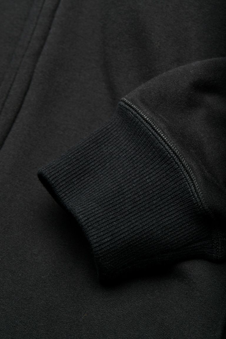 表地 : コットン84% ナイロン15% ポリウレタン1% 【MATERIAL】 綿ナイロンストレッチ裏毛。 独特の滑りと微光沢感が美しいストレッチ裏毛です。 従来のコットン裏毛の素材とは違い、毛羽立ちが少なく 密度感のある表面のクリアさとモチっとした弾力があり、 ストレッチ性に富んだ素材です。 裏側のパイルのループにも双糸を使用することで、 ふっくら柔らかな質感が特徴的で非常に滑らかな肌触りを実現しています。 軍物の素材とは一見分からない様な裏毛素材ですが、 質感や肌触りが全くといっていいほど 別物の裏毛ジャージ素材となり、丁寧に仕上げています。 本来杢グレーの商品ラインナップですが、今回黒のみで黒地に黒でプリントを施し、 上質なミリタリースウェットジャージとして、 ZIPパーカー、R-NECKスウェット、ジャージパンツの3点をリリースいたします。 【PRINT】 VINTAGEのようにかすれたプリントを再現した シルクスクリーンによるかすれラバープリントです。 インクがベタッとプリントされる箇所とかすれた箇所の対比が特徴のプリント技法です。 デザインデータでかすれさせる手法ではなく手作業でかすれを表現し、 1枚1枚にかすれ感の個体差が出る様に仕上げています。 VINTAGE同様にプリントの個体差がある事で唯一の商品となります。 【ZIP】 1983年に創業したRACCAGNI社。 世界に先駆けて新たなZIPPERを開発する傾向が強く、 より洗練した完成度の高いZIPPERを絶えず開発しています。 その中でも最高級な「SUPER RACCAGNI」シリーズを採用。 欧米のラグジュアリーブランドも採用する最高級ZIPPERで 磨き技術が非常に高いので光沢があり、滑りも滑らかなので、 非常に高級感漂うジュエリーの様相を持ったZIPPERです。 そのファスナーをマットブラックに仕上げています。