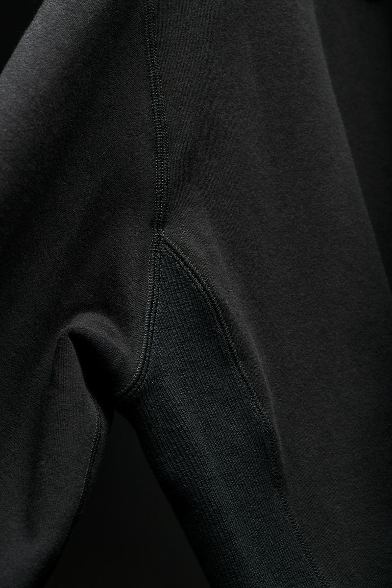 ラグランスリーブが採用され、裾や袖口は長めのリブ仕様。