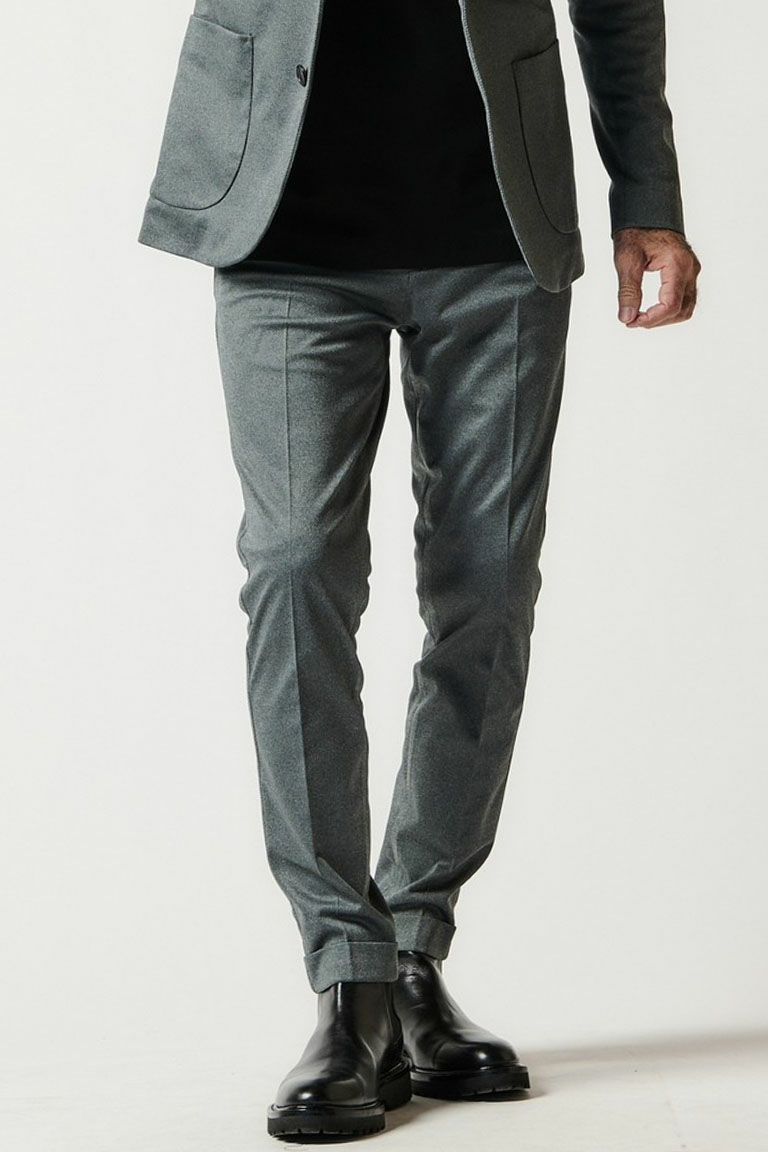毎シーズン定番として展開しているRIB SET UP シリーズ。 1960~70’のテーラードジャケットを検証しクラシックなディテールはそのままに 素材使いとデザインにより構築したテーラードコレクション。 シルエットを決めるアームホールの形状・カマのバランス 全体のゆとり分量すべてを計算、構築した至高のシルエットが生み出されています。 脇にキックバックの良いテレコを採用することで デザインと共に着心地を向上させテーラードの仕上がりを損なうことなく ノンストレスでデイリーなセットアップに仕上げています。 裏始末はテーラードの基本である「雨蓋つき本台場仕立て」と 背裏は軽さを意識した観音仕立てで遊び心も忘れずに 胸ポケットの袋布をチーフに見立てたディテールを採用しています。 また、1piu1uguale3オリジナルの折鶴ピンをラペルに付属しています。 スラックスタイプのパンツはクラシックな佇まいを崩すこと無く 実用性を高めた仕様となっています。 ジャケット同様にパイピング・シック布などの クラシックなディテールはそのままに、ウエストベルトにテレコ(リブ)を採用。 同時に脇の立体切替部もテレコを使用することで 至高の着心地を実現させています。