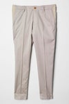 毎シーズン定番として展開しているRIB SET UP シリーズ。 1960~70’のテーラードジャケットを検証し クラシックなディテールはそのままに 素材使いとデザインにより構築したテーラードコレクション。 身頃裏には1piu1uguale3を象徴する柄の一つである ペイズリーをジャガードで表現した素材を使用しています。 シルエットを決めるアームホールの形状・カマのバランス 全体のゆとり分量すべてを計算、構築した 至高のシルエットが生み出されています。 脇にキックバックの良いテレコを採用することで デザインと共に着心地を向上させテーラードの仕上がりを損なうことなく ノンストレスでデイリーなセットアップに仕上げています。 テレコはあえて表地同色ではなく、同色ぶらししています。 裏始末はテーラードの基本である「雨蓋つき本台場仕立て」と 背裏は軽さを意識した観音仕立てで、遊び心も忘れずに 胸ポケットの袋布をチーフに見立てたディテールを採用しています。 また、1piu1uguale3オリジナルの折鶴ピンをラペルに付属しています。 スラックスタイプのパンツは クラシックな佇まいを崩すこと無く 実用性を高めた仕様となっています。 ジャケット同様にパイピング・シック布などの クラシックなディテールはそのままに、 ウエストベルトにテレコ(リブ)を採用。 同時に脇の立体切替部もテレコを使用することで 至高の着心地を実現させています。