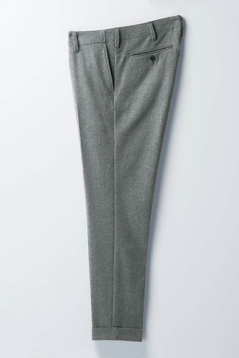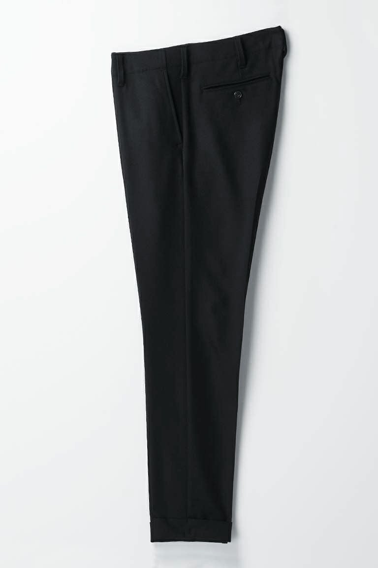 スラックスタイプのパンツはクラシックな佇まいを崩すこと無く実用性を高めた仕様となっています。