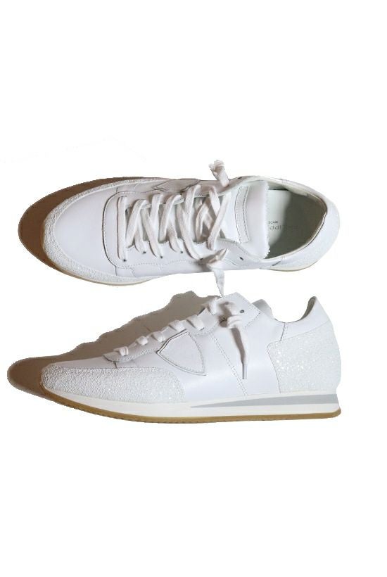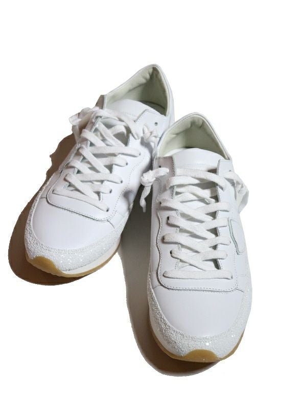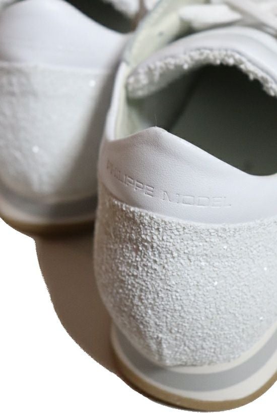 大人気モデルが再登場 1PIU1UGUALE3がブランドとして 世界初の別注をかけたPHILIPPE MODEL。 好評だった人気モデルが復刻・再入荷しました。 whiteカラーのこちらはカーフ素材を全面に採用。 トゥとヒール部には大中小様々のグリッターとラメを配し 爽やかでありながらゴージャスさを感じるモデルです。 ライニングには裏毛素材を用いており 裸足やショートソックス着用時にも心地良さを与えてくれます。 革靴と同じ手法で作られる特徴的なヒールカップも健在で シューレースを緩めたままでも踵が抜けないよう型作られています。 美しいフォルムと巧みなデザインが秀逸な、渾身の1足です。 ハンドメイドならではの独特な表情とクオリティー デザイン、機能性共に抜群のクオリティーを兼ね備える イタリアのハンドメイドシューズブランドPHILIPPE MODEL PARIS。 ButteroやChristian Louboutinなどヨーロッパの名立たる 靴ブランドでキャリアを積んだPaolo Gambatoと フランス人デザイナーPhilippe Modelが出会い 2008年にブランドがスタートしました。 フィリップモデルのコレクションは、ハイクオリティな 靴の生産地で知られているイタリアのヴェネト州 ヴェニス近郊の街Riviera del Brentで レザーカッティングや靴底の組み立て等 職人の細かな手作業によって生産されています。 熟練の職人技がプロダクツに反映され、まぎれもなく素晴らしい 良質でエレガントな価値あるスタイルが生み出されています。 手作業で作られる靴は、ハンドメイドならではの独特な表情を作り出し ひとつとして同じものは存在しません。