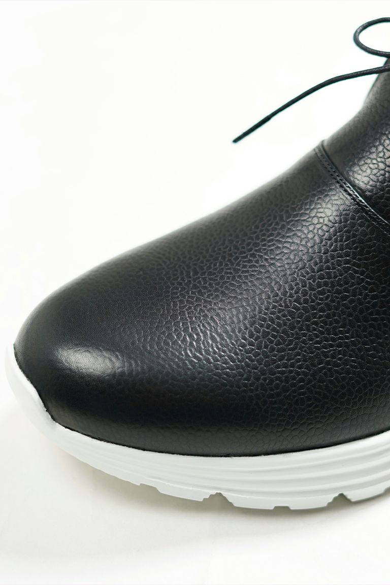 NEO PLANE SNEAKER 日本の某革靴ファクトリーに依頼したレザースニーカーです。 アッパーの革はヨーロッパの原皮日本でなめした 上質なカーフを使用しています。 ヨーロッパの大きな大地でストレスなく育っているので 革質も非常に良いです。 ソールは本格的なスニーカーソールなので、 もちろん走る事は可能なアクティブソールを採用しています。 靴の基本的考え方は「革靴×スニーカー」です。 ソールはスニーカーですが、基本的な作りは革靴です。 ラスト設計、製靴技術は革靴メーカーならではの ノウハウが詰まっています。 スニーカーメーカーでは使用しない足なり構造の ラスト設計パターンの制作、釣り込み等でフィッティングを 重視した靴作りをしています。 トラディショナルなアッパーデザインと軽快なアウトソールにより 「走れる革靴」として用途はかなり幅広く使っていただけます。 革の断面も織り込むことによって 非常に美しい仕上げを行っており、 ドレス見えするスニーカーとしてお使いください。