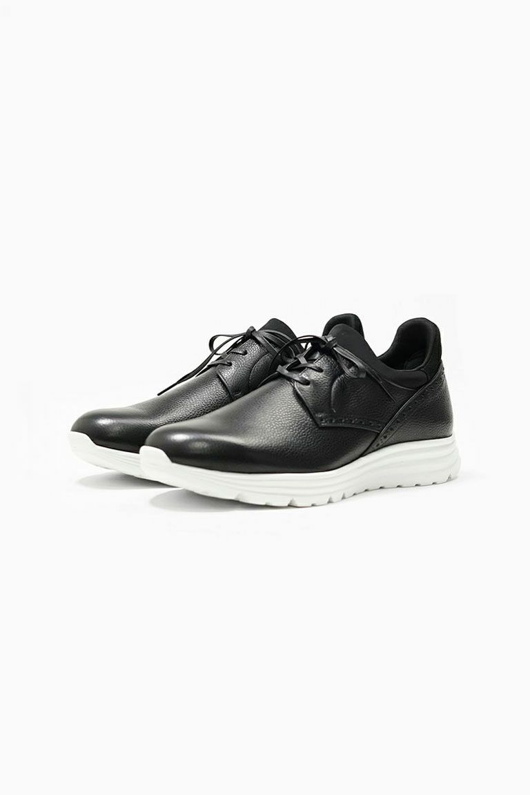 NEO PLANE SNEAKER 日本の某革靴ファクトリーに依頼したレザースニーカーです。 アッパーの革はヨーロッパの原皮日本でなめした 上質なカーフを使用しています。 ヨーロッパの大きな大地でストレスなく育っているので 革質も非常に良いです。 ソールは本格的なスニーカーソールなので、 もちろん走る事は可能なアクティブソールを採用しています。 靴の基本的考え方は「革靴×スニーカー」です。 ソールはスニーカーですが、基本的な作りは革靴です。 ラスト設計、製靴技術は革靴メーカーならではの ノウハウが詰まっています。 スニーカーメーカーでは使用しない足なり構造の ラスト設計パターンの制作、釣り込み等でフィッティングを 重視した靴作りをしています。 トラディショナルなアッパーデザインと軽快なアウトソールにより 「走れる革靴」として用途はかなり幅広く使っていただけます。 革の断面も織り込むことによって 非常に美しい仕上げを行っており、 ドレス見えするスニーカーとしてお使いください。