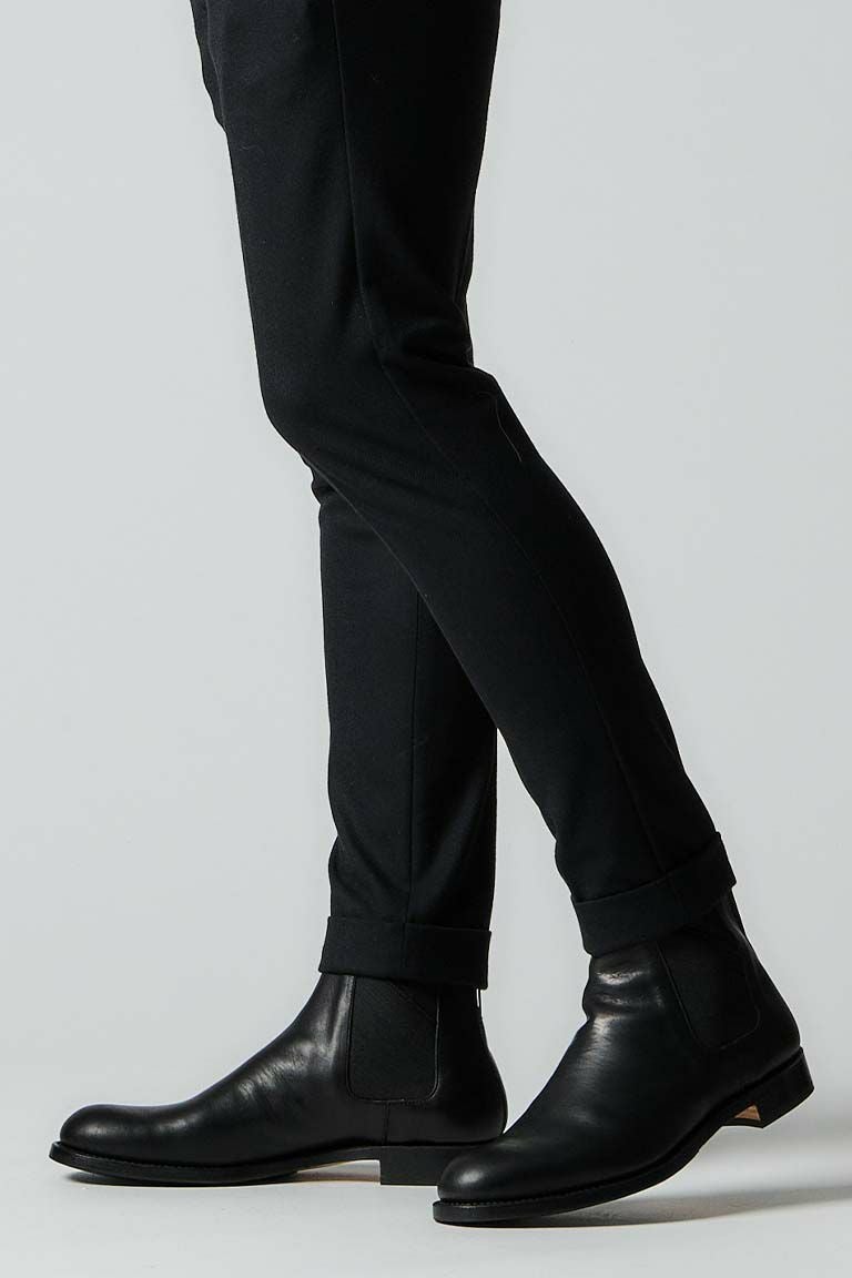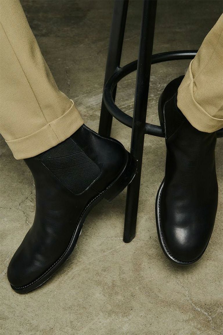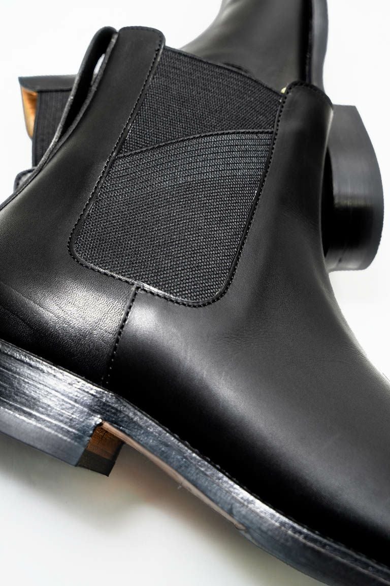 MADE IN JAPAN に拘りグットイヤーウェルト製法で作られた レザーシューズコレクションの新型チェルシーブーツ(サイドゴアブーツ)です。 1960年代ロンドンチェルシー地区のアーティストがサイドゴアブーツを履いた事から イギリスではチェルシー・ブーツと呼称されていました。 日本人の足型に合わせて削り出したオリジナルの木型を採用し、 トゥの形状、甲の高さと筒の高さ、太さを慎重に調整し、 美しいフォルムと履き心地を兼ね備えたパターンを開発しました。 反りのあるローリング設計の木型は長時間履いても疲れにくく、 足馴染み抜群の仕上がりが特徴です。グッドイヤーウェルテッド製法の為、 頑丈で安定しており歩行性・緩衝性に優れ長時間歩いても疲れにくい特徴を持ちます。 また、ソールと甲革が直接縫い付けられていないため(複式縫い)ソールが磨り減った場合は オールソールと呼ばれる靴底全体を新たなものに付け替える修理が可能で、長く愛用していただけます。 VIBRAM社製のアウトソールは実用性とメンテナンスを考慮しハーフソール仕様にて仕上げています。