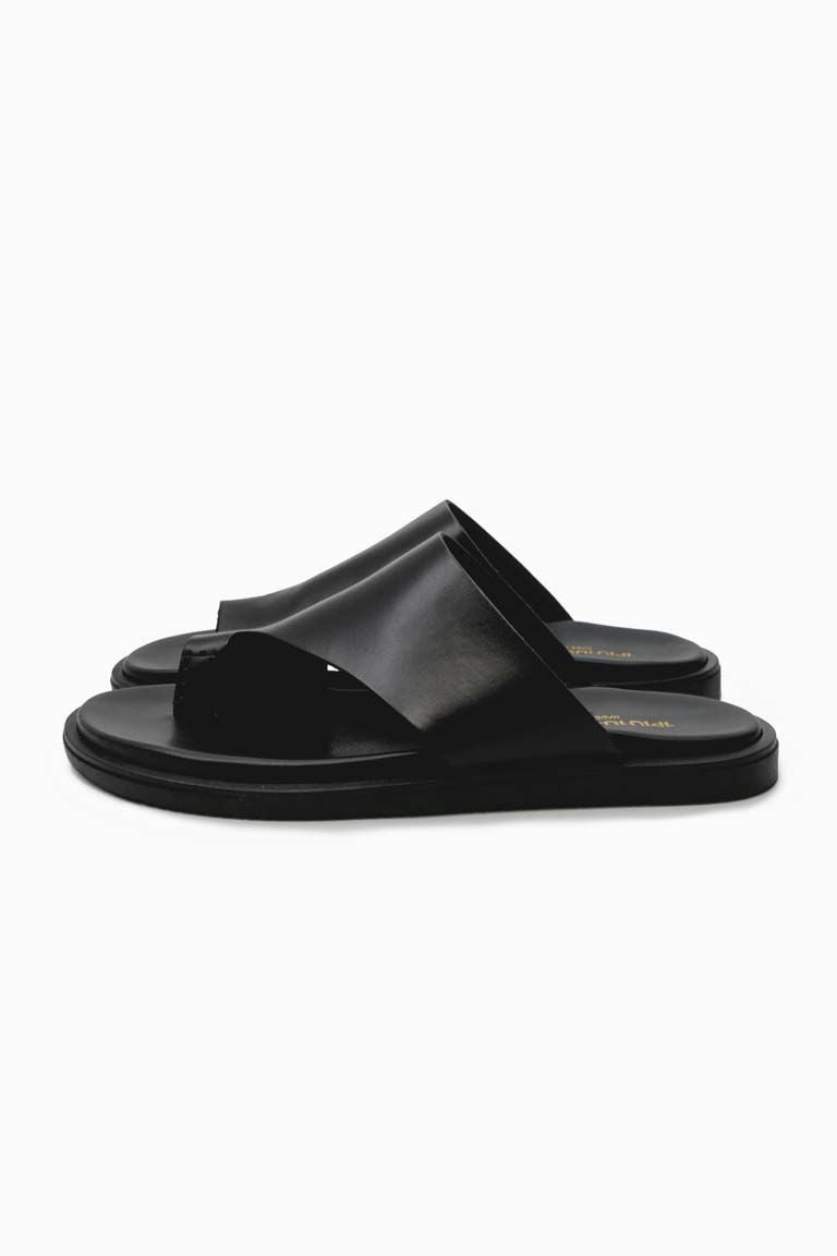 1PIU1UGUALE3より新作の「THUMB SANDAL」です。 このサンダルはイタリア・モンスマーノ、フォレンツェ近郊で、 1937年創業したレザーシューズファクトリーで別注生産しております。 ヨーロッパの名立たるメゾンからアメリカ・カナダまで 世界中から支持のあるファクトリーです。 サンダルコレクションは大変人気で、 インソール部分にクッションが入っているため、快適な履き心地です。 アッパーには、足当たりの良いカーフレザーを使用しています。 この地域では今から800年以上前から、 革のなめし技術が確立されていたと言われています。 今回使用しているバケッタレザー(カーフレザー)は、 この地方に古くから伝わる伝統的ななめし方で、 1か月以上もかけて今もなお手作業で作られています。 適度な厚みと弾力感があり、使うほどに自然な光沢が増していくのが特徴です。 今回はソールも程よく厚みのあるソールを使用しており、 より快適に着用できコーディネートの幅も広いモデルに仕上がっています。 生産国:日本