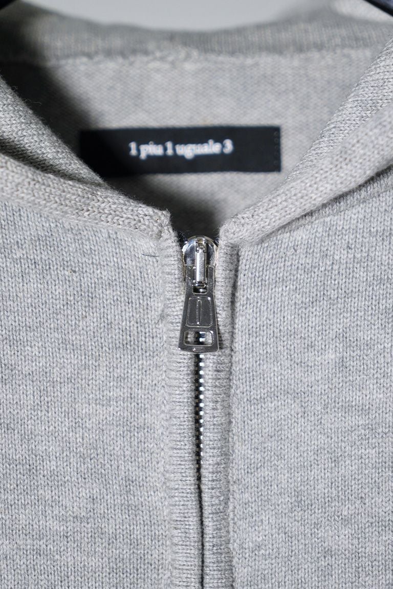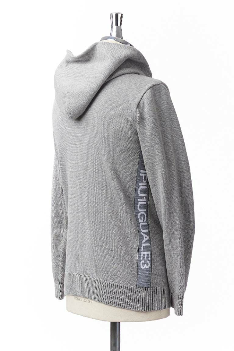 糸は綿100%のTOP染糸を採用。TOP染でメランジに 仕上げることにより自然な風合いと色合いを表現しています。 無地のベースニットは3本取りの10G(ゲージ) 度詰め天竺で手横機により編み立てています。 迷彩のベースは1本取りのダブルジャガードにて編立てています。 両脇にポリエステル糸 AMOSSA(アモッサ)にて編み立てた テープ地を上付けすることにより素材感の違いを出しています。 また、右側のテープ上にのみ1PIU1UGUALE3ロゴを配色で表現し カジュアルでスポーティーな仕上がりになっております。