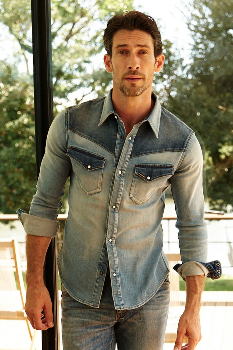 定番として展開しているウエスタンシャツです。 同系色でも濃度の異なる2種類のデニムを パーツ毎に切り替えて使用することで2トーン配色仕様です。 アメリカ西部のカウボーイ達が着ていたワークシャツが 一般化したウエスタンシャツ。 伝統あるディテールのスナップ釦やフラップ付き胸ポケット、 ヨークを踏襲しながら、細部のバランスを 1PIU1UGUALE3のフィルターを通して再構築しました。 スッキリとしたシルエットで様々なアイテムとの相性も良く、 汎用性の高い1枚です。 縫製・加工は名立たる海外ビックメゾンを手がけてきた 縫製工場・加工場にて、 その中でも限られた熟練の職人により縫製・加工を施し 匠の技により日本のいわゆる「デニム」とは一線を画する シャープなデニムに仕上がっています。 加工はあくまでも自然な履き込み感を表現する為に ゆっくり時間をかけて 「擦り」「ブラスト」「バイオウォッシュ」を施すことで 派手さこそないがデニムの持つ本来の 存在感を発しているUSED感です。 タック釦とリベットはオリジナルロゴ入り真鍮製を使用しています。