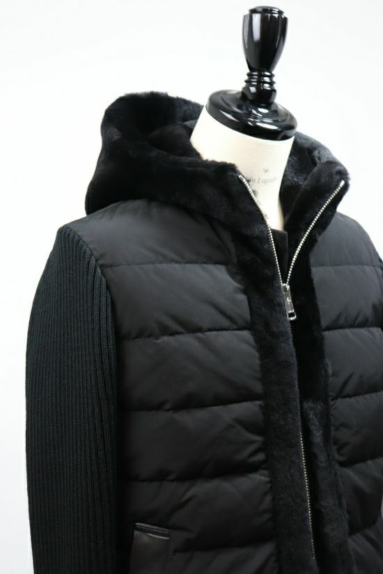 他の画像を見る 1piu1uguale3 1PIU1UGUALE3 × EMMETI RIB SLEEVE MOUTON HOODED BLOUSON[BLACK] ¥ 275,000 税込 EMMETI Sold Out