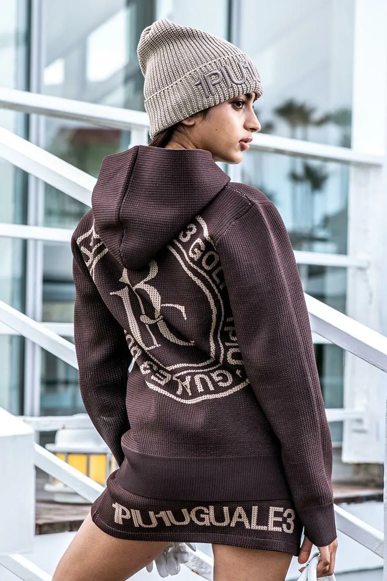 秋冬らしいブラウンカラーのニットパーカーセットアップ。